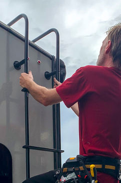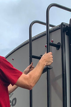 They fit in tight spaces. The sizes are customizable. And you know the design is solid and as safe as possible, because our company president is on the external ladder canvass committee for the RVIA.